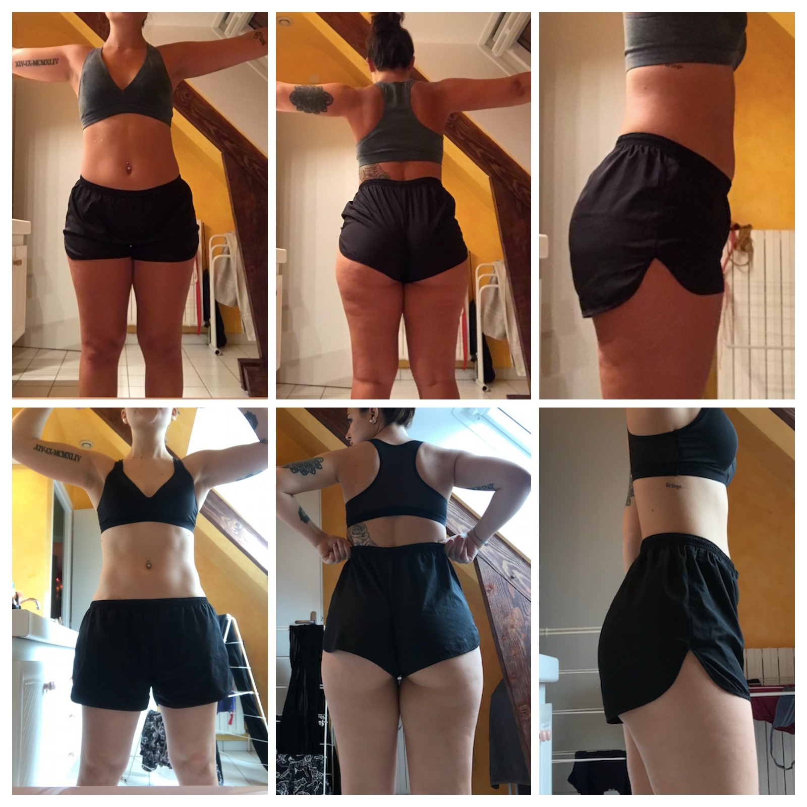 Au fur et à mesure, la motivation est arrivée, j’avais et j’ai besoin de me défouler après 7 heures assises sur une chaise de bureau. Et forcément, 4 séances par semaines, le corps se transforme et on voit apparaître les changements, et ça c’est encore plus motivant. C’est seulement depuis mars que je me suis fixée un objectif, fin août je pesais 74,2 kg, fin Mars je pesais 67 kg, j’aimerai atteindre 63 kg voire 62 kg pour juillet. Je garde la pêhche !